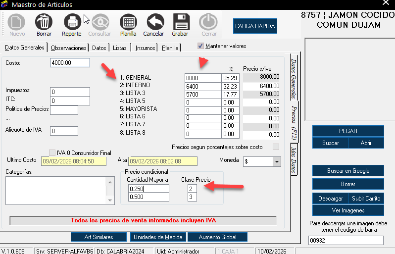 Precio general configurado.